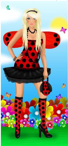 I spotted this lovely spotted ensemble as the featured Diva just recently and died. I absolutely love this outfit and had considered purchasing it from the User Shops. I have no clue who is wearing this, but I know that it was created by none other than Miss Perrie. Ah, how adorable it is! It's so youthful and fun! I love the use of the background to put the wings on the ladybug, although, I think they do look a little odd. I think we will all miss Perrie's designs, but we are all still lucky enough to have her own shop, I suppose. And to the Diva wearing this outfit, I like the choice of hair, however, I'm really not feeeling the makeup, very much. The bleachy blonde hair reminds me of Perrie.